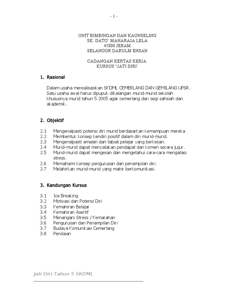 Up to 3 cash back KEM JATI DIRI 2019. KERTAS KERJA KEM JATI DIRI - PELAJAR BERISIKO KERTAS KERJA PERKHEMAHAN PERDANA. KEM BINA JATI DIRI ROHANI PELAJAR ISLAM DIKENDALIKAN OLEH.
